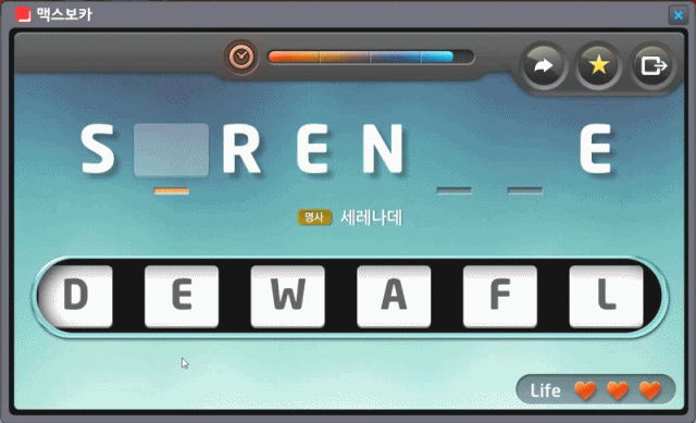 단어와 문장을 영상으로 학습한 후 스펠링을 체크할 수 있는 간단한 게임이 나와요.