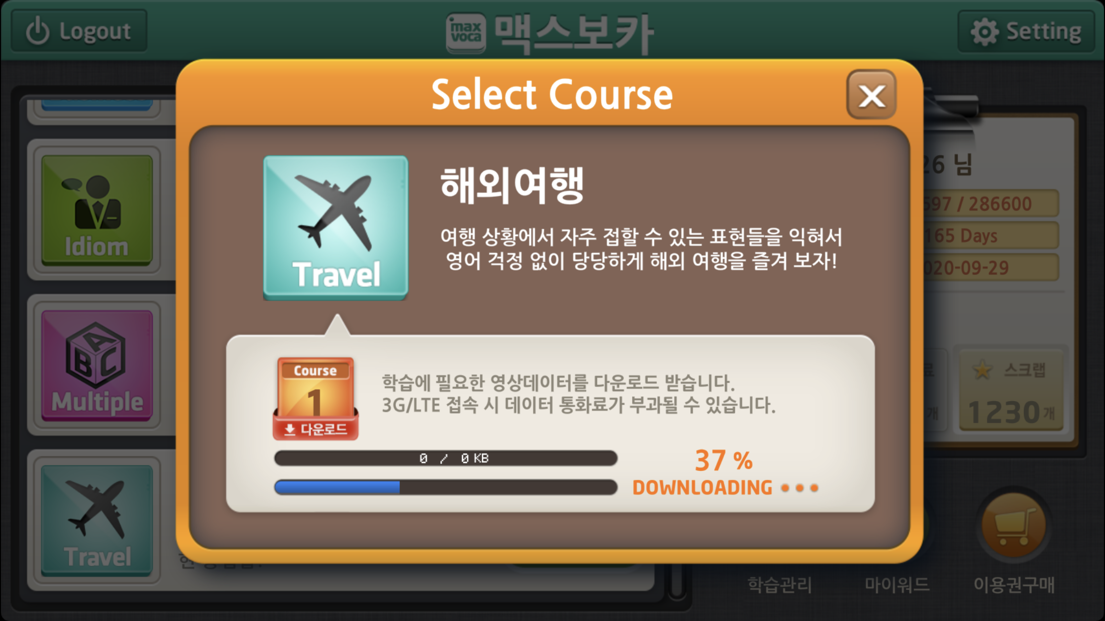 다음 코스를 학습하려면 다운로드 받아야 해요 한 코스씩 다운 받아 학습을 끝내면 다음 학습할 코스를 새로 다운로드하는 형식으로 되어 있습니다.