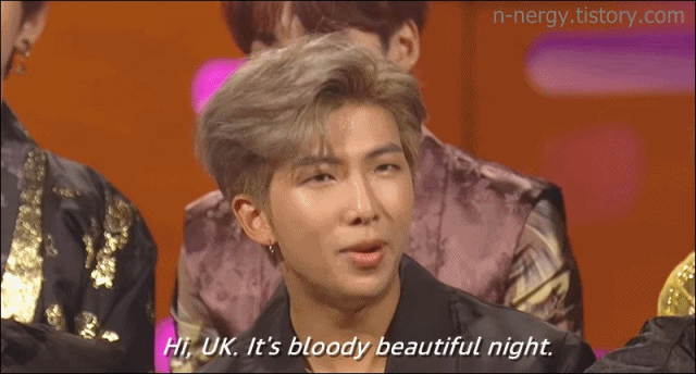 RM이 영국 BBC의 'The Graham Norton Show' 토크쇼에 출연해서 건넨 첫인사말입니다. 여기서 RM은 영국식 발음뿐만 아니라 bloody라는 영국스러운 표현도 사용했는데요. bloody는 'very'와 비슷한 표현으로 긍정, 부정에 모두 폭넓게 쓰입니다. 영국 드라마에 수도 없이 등장하죠.