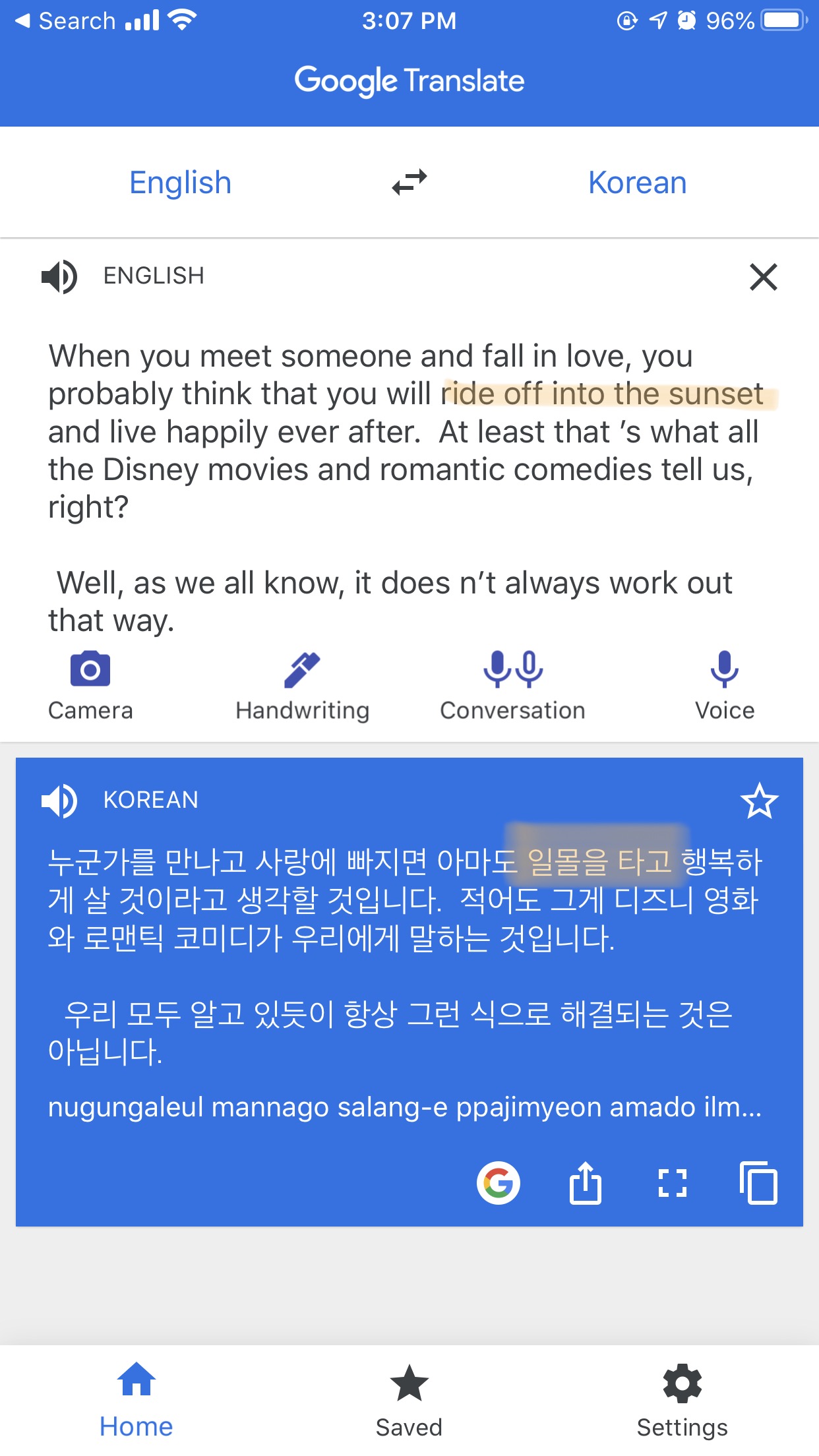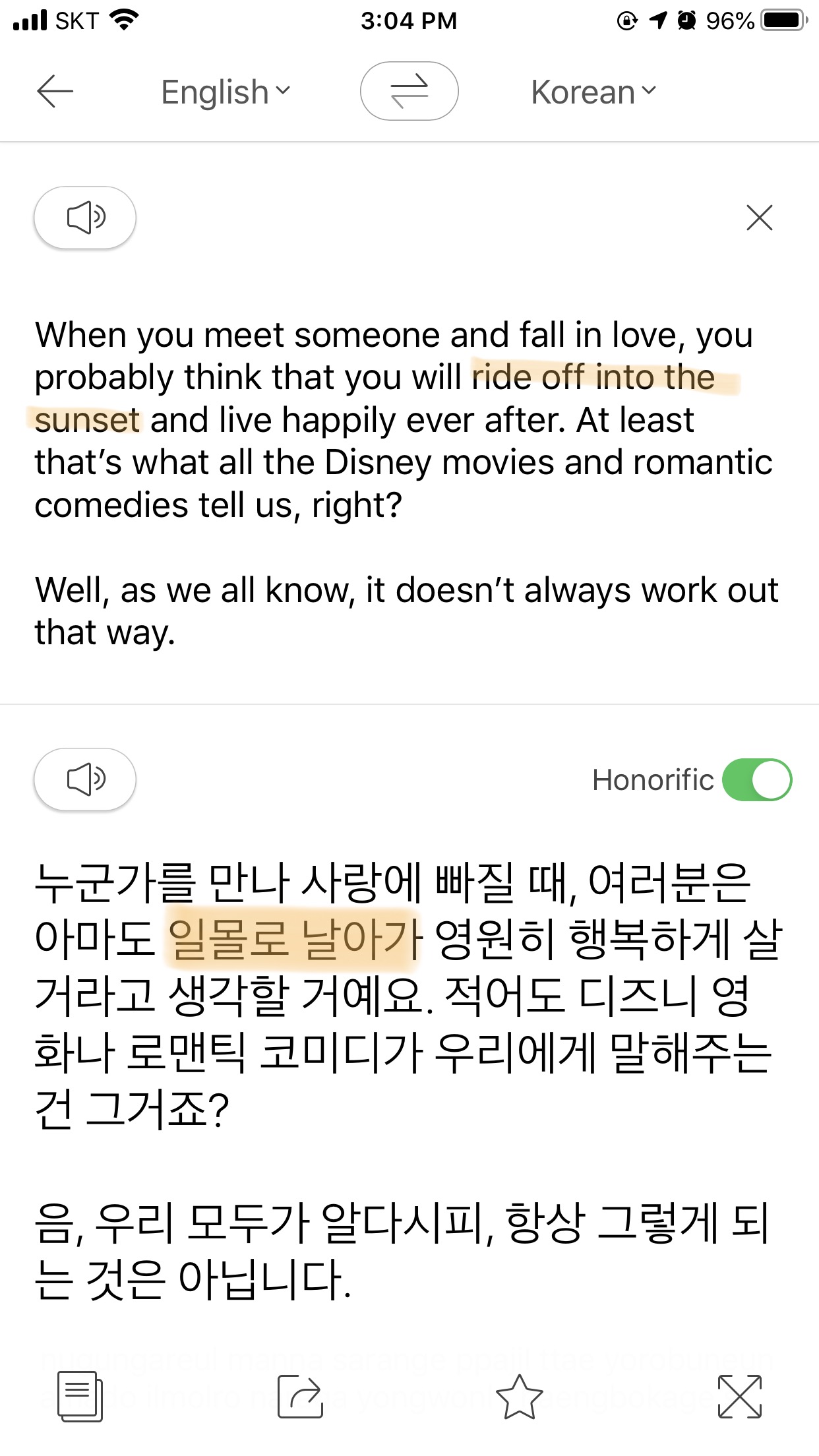 이것이 제가 공부할 때 구글이 아닌 네이버 파파고 번역기를 선택한 가장 큰 이유이기도 해요.^^