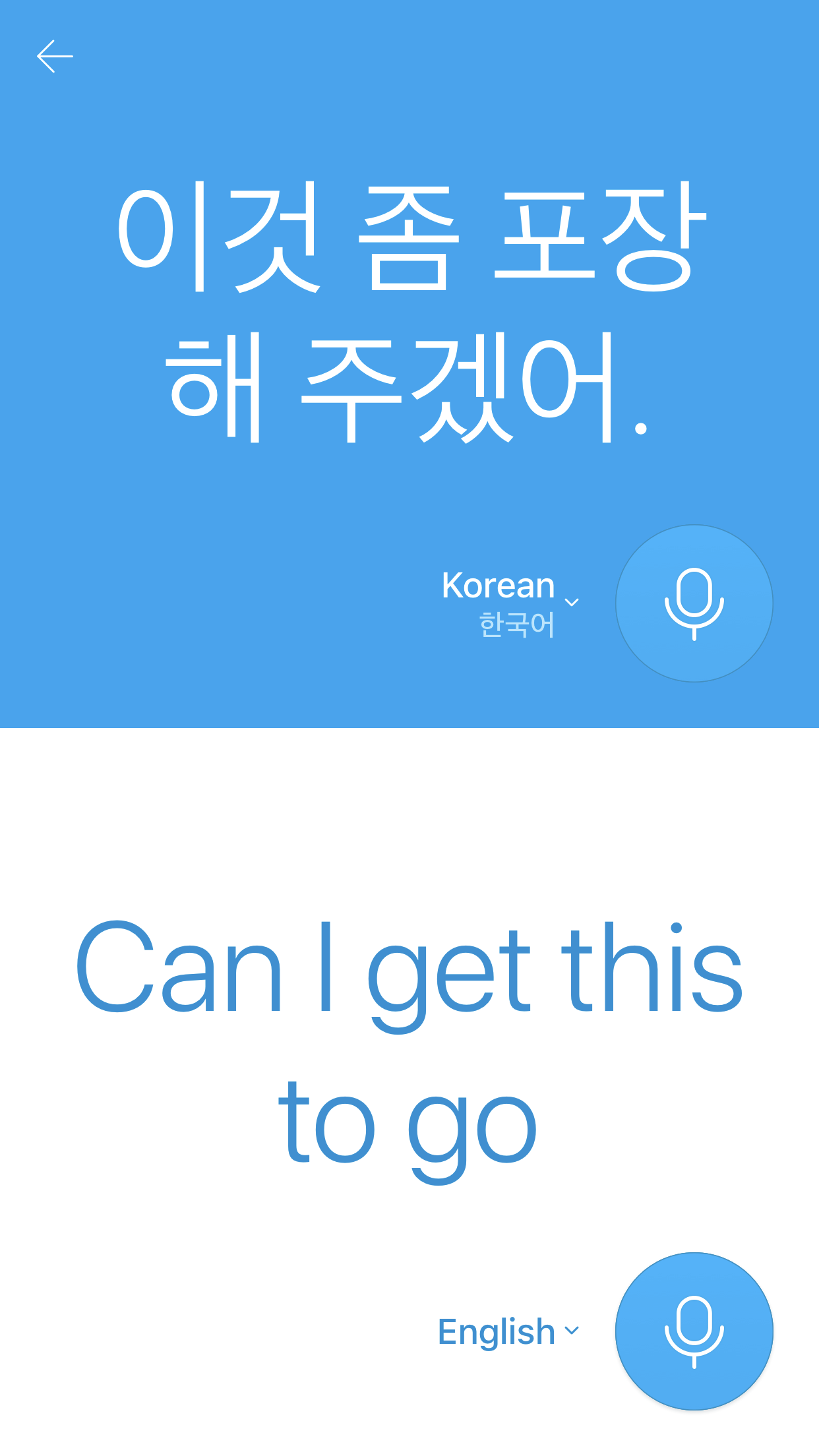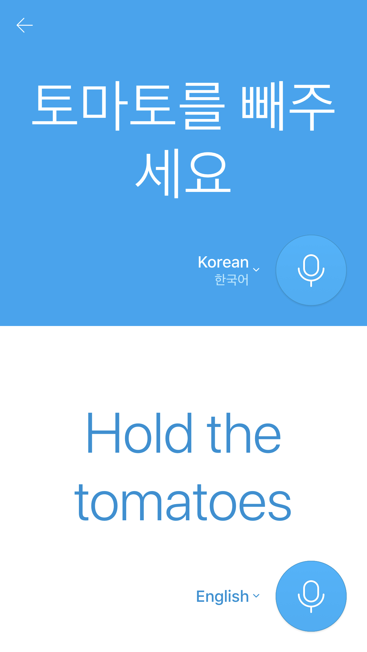간단한 대화 표현을 번역해 보았습니다. 영한 번역은 ‘Can I get this to go?’, 한영 번역은 ‘토마토를 빼주세요.’라고 해 보았는데요.