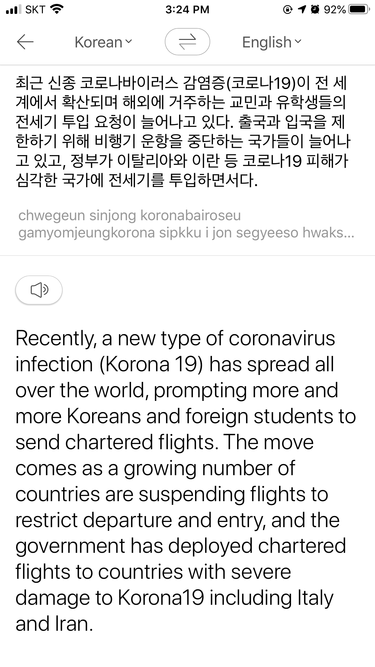 대화 모드 - 한역 번역 음, 어떻게 느끼셨나요? 저는 파파고 번역기의 표현이 좀더 정확하다고 느꼈는데요.