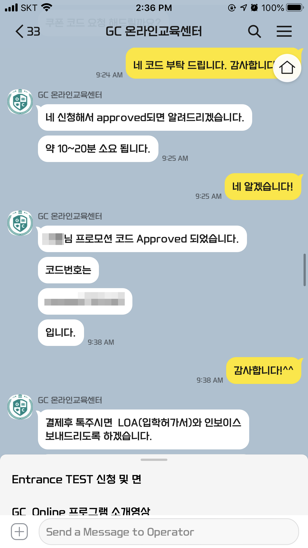 카카오톡으로 GC온라인교육센터에 요청하시면 됩니다.