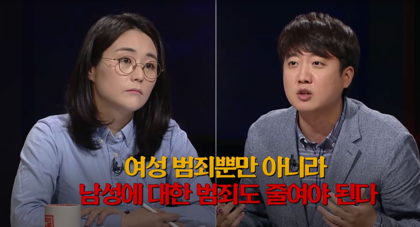 2016년 발생한 강남역 살인 사건에 저도 분개했던 기억이 있습니다. 그러나 이런 사건을 '남성'이 '여성'을 살해한 사건으로 몰아가며 남성 혐오를 조장하는 것 또한 옳지 않습니다. 이준석이 이 토론에서 예로 들었듯 고유정이 남편과 의붓아들을 살해했다고 해서 '여성'이 '남성'을 살해한 사건으로 볼 수 없듯이 말이죠. 남성과 여성은 서로 싸워야 할 존재가 아닙니다. '남성 우월주의'에 반대한다고 '여성 우월주의'를 주장할 수 없는 것처럼 말입니다.