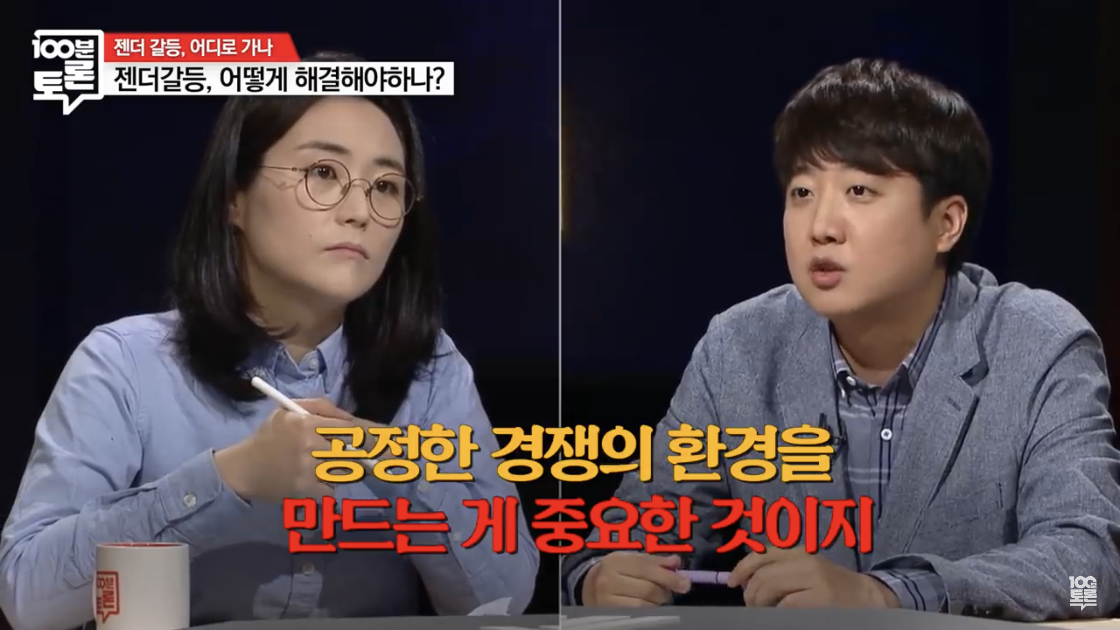 이준석이 끝까지 강조하는 건 어느 주제에서건 '공정한 경쟁'이었습니다. '여성 할당제'로 5:5 비율을 맞추는 것보다 중요한 게 공정한 경쟁 환경을 만드는 것이고, 정책 보정을 하는 한이 있어도 반드시 이뤄내겠다는 것이지요.